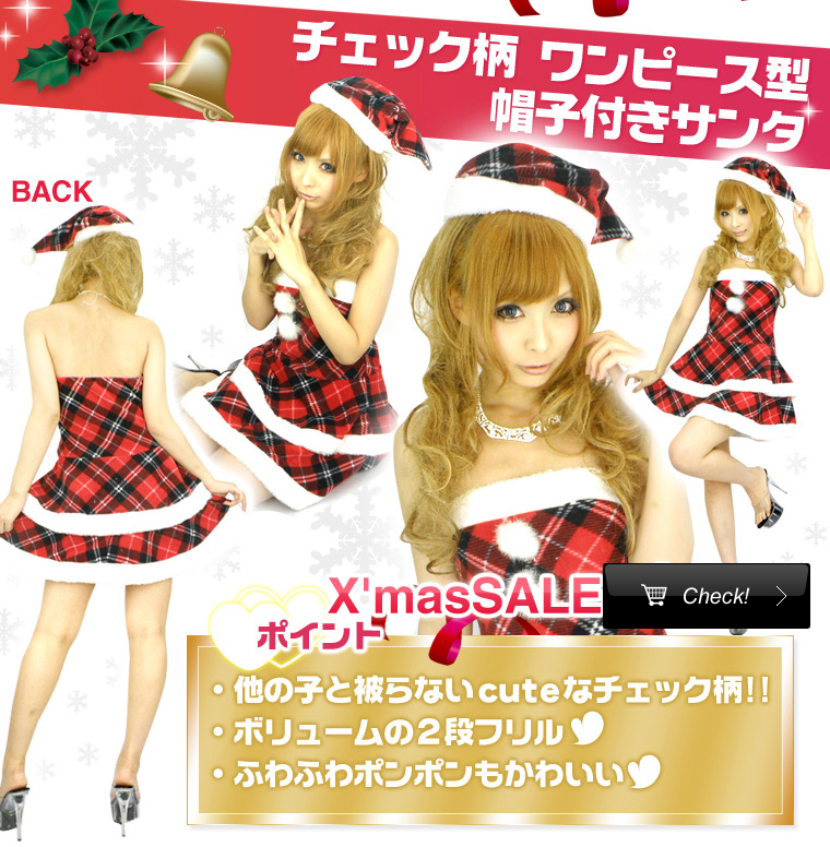 ありそうでなかったチェック柄のサンタコス衣装です。